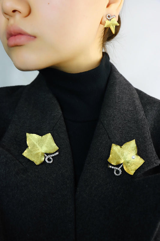 A set of Cartier 18K Gold Platinum Diamond Maple Leaf Clips