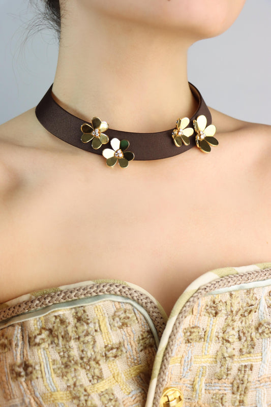 Van Cleef & Arpels 18K Gold Diamonds Frivole Silk Choker