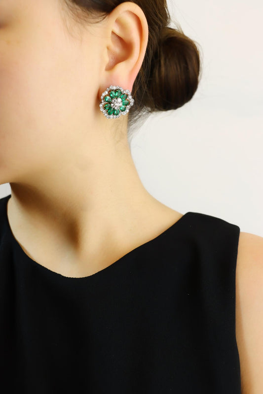 VAN CLEEF & ARPELS PLATINUM EMERALD AND DIAMOND CAMELLIA FLOWER EARRINGS