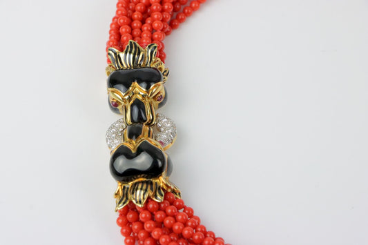 Rare Vintage David Webb Coral and Enamel Torsade Necklace