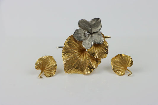 Sold outFine 14K Gold Brooch Pin Earring Set