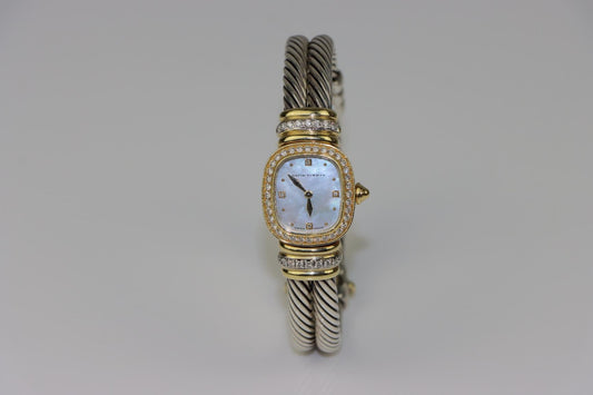 David Yurman 18K Gold & Sterling Diamond Cuff Watch MOP Dial