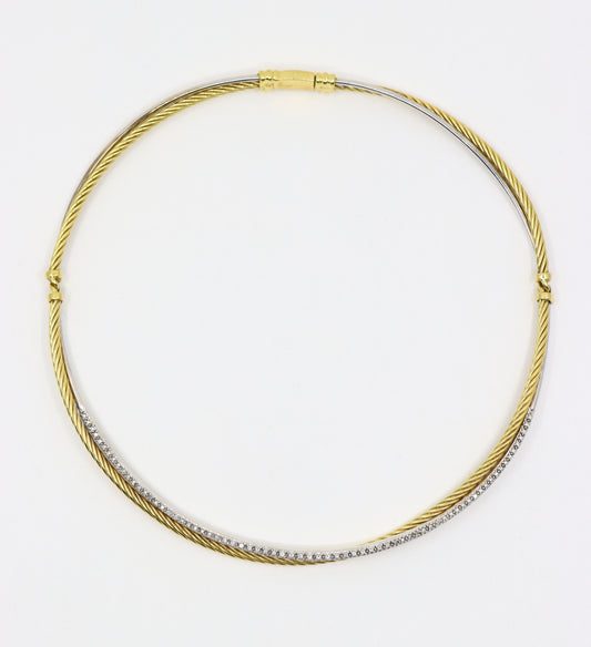 David Yurman 18K Yellow & White Gold Diamonds Sculpted Cable Flex Choker