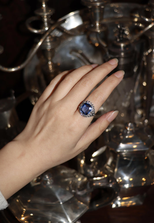 GIA Certified Art Deco Ceylon No Heat Sapphire Ring Diamonds