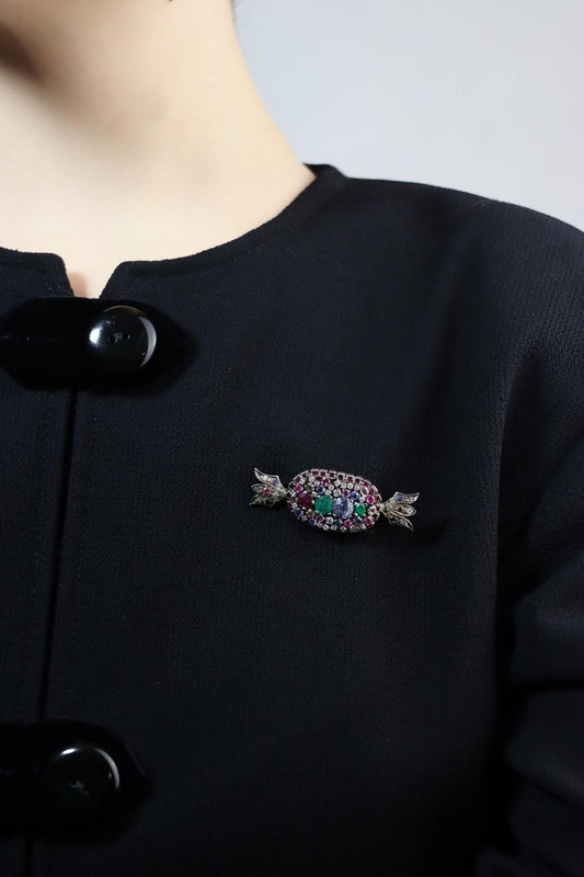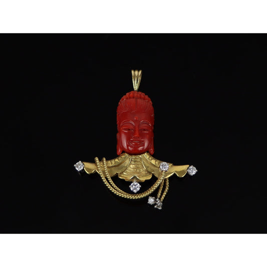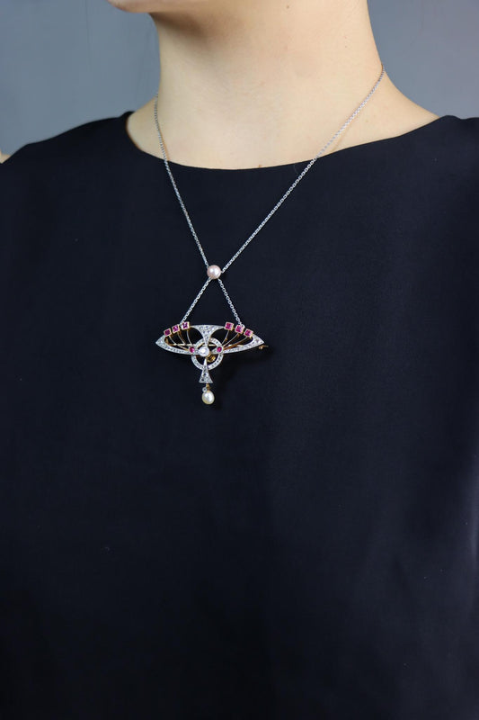 18K Gold & Platinum Diamonds Ruby Pearl Brooch Necklace