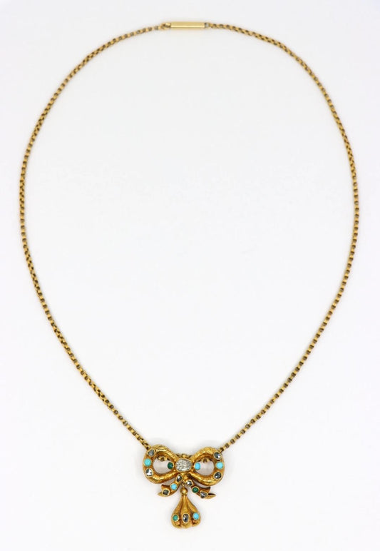 14K Gold Turquoise Diamond Bow Tie Necklace