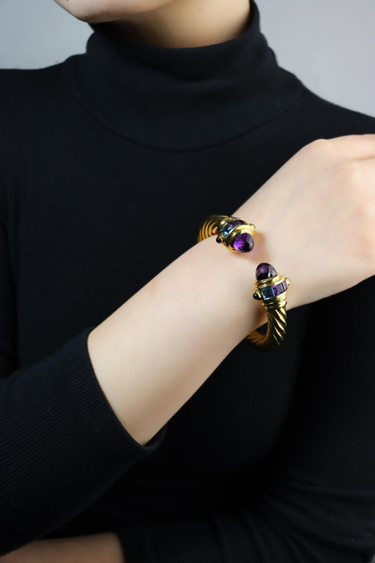 Vintage 18K Gold Muti-Gem Renaissance Cable Bracelet