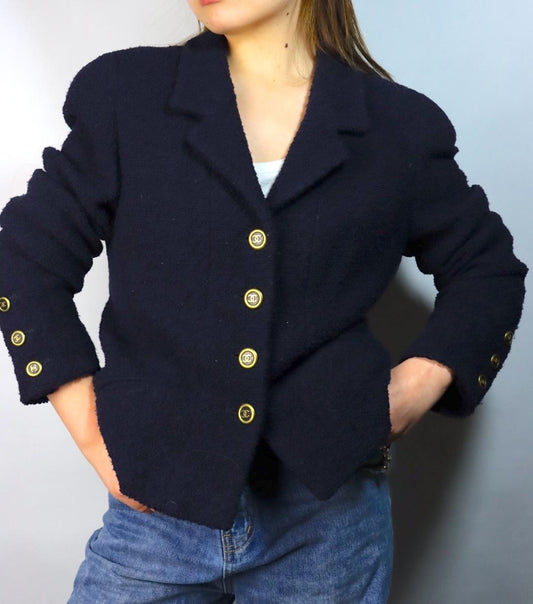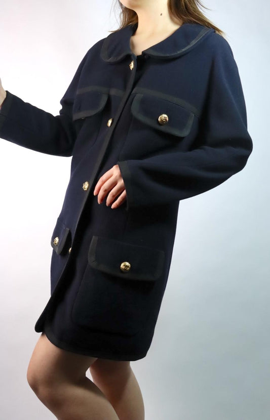 Vintage 1996 Chanel Classic Navy Wool Long Jacket