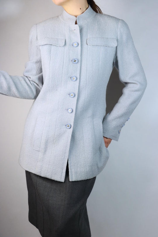 Vintage 1997 Chanel Baby Blue Tweed Jacket