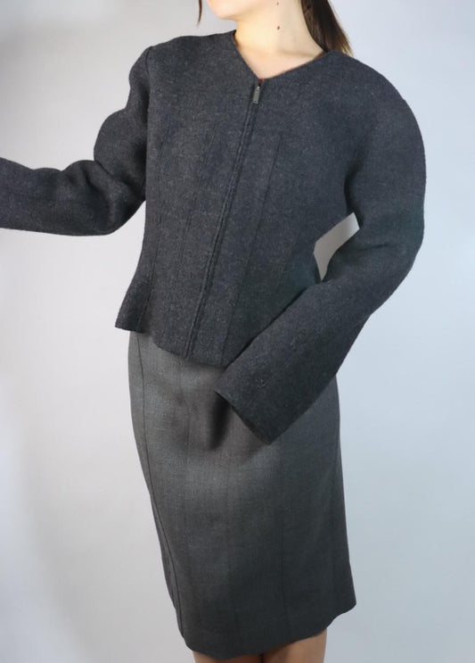Vintage 1999 Chanel Gray Wool Jacket Suit