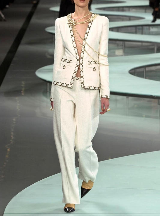 Vintage 2002 Chanel Chain White Jacket Pant Suit