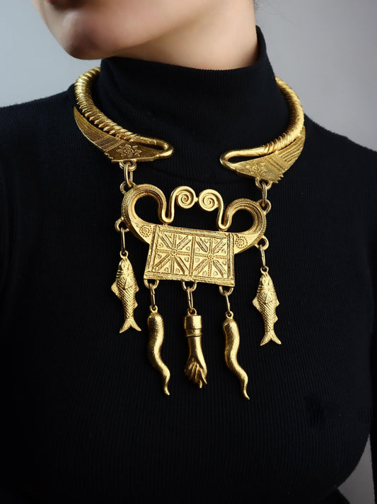 Vintage Alexis Kirk Gold Tone Festoon Bib Choker