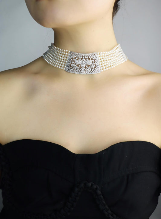Vintage Platinum Diamonds Multi-Stands Pearl Necklace