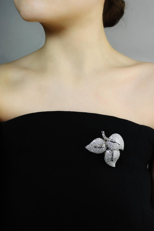 Vintage Platinum Diamond Pearl Cluster Brooch Pin
