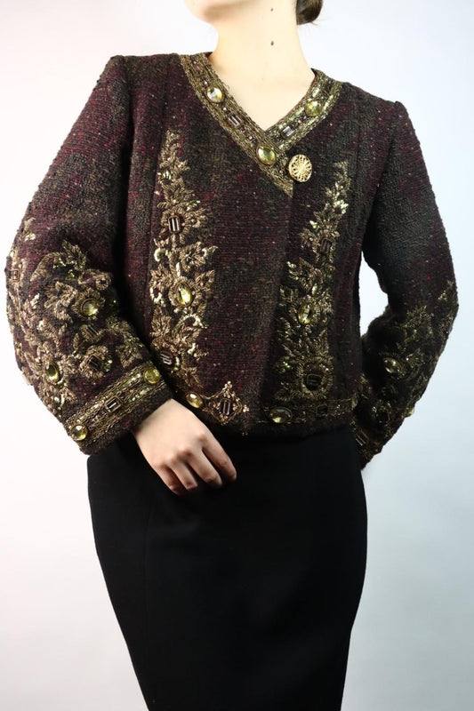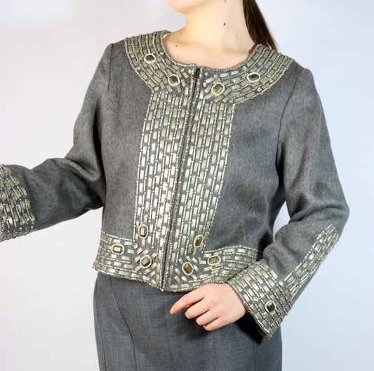 Vintage Oscar De La Renta Grey Embellished Jacket