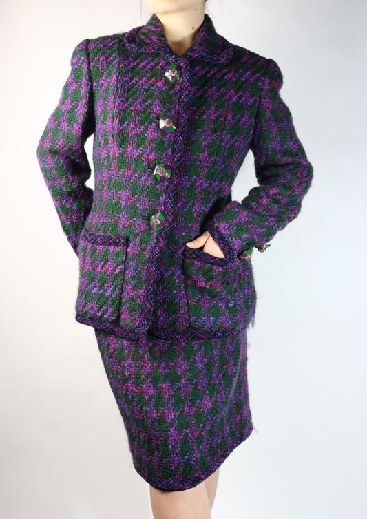 Vintage Oscar De La Renta Purple & Green Tweed Jacket & Skirt Suit