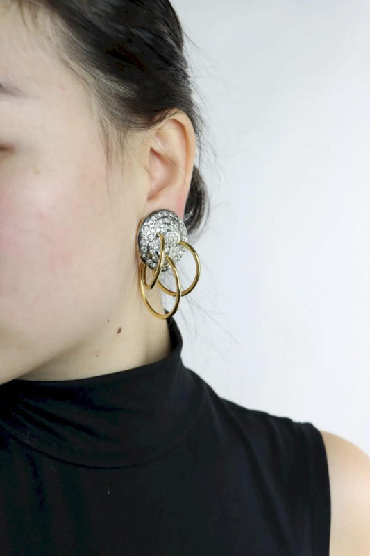 Vintage Valentino Gold & Silver Tone Triple Pierced Rhinestone Earrings