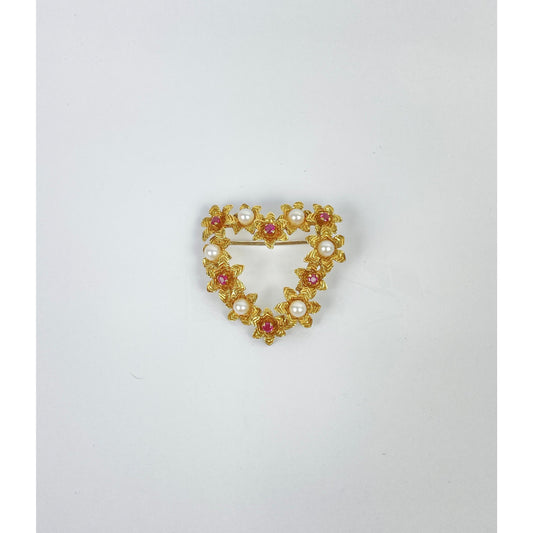 Vintage Tiffany & Co. 18k Gold Ruby Pearl Heart Brooch Pin