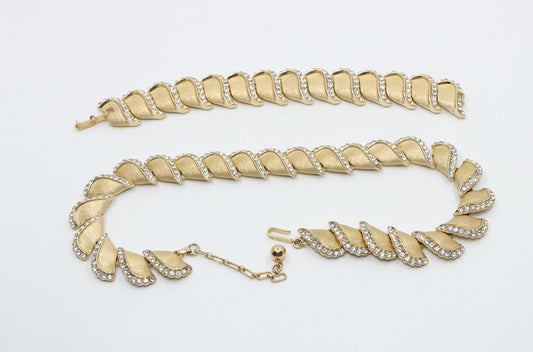 Vintage Trifari Gold Tone Rhinestones Bracelet & Necklace Set