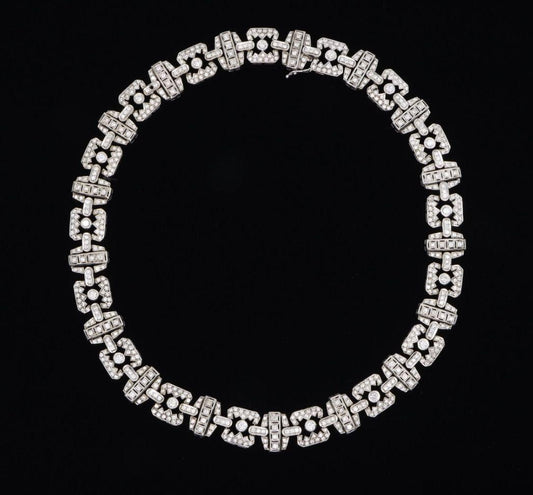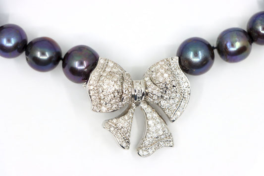 18K White Gold Diamond Bow Tie Brooch Black Pearl Necklace