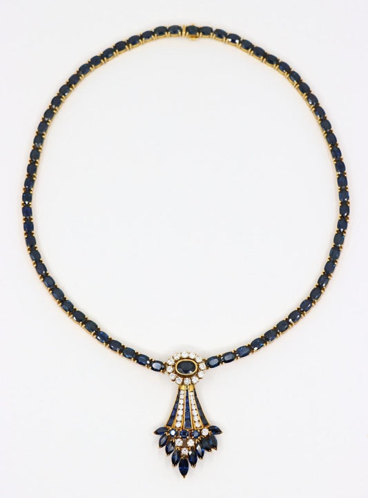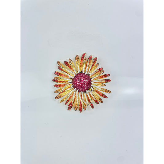 18K Gold SunBurst Ruby Diamond Sapphire Pendant Brooch