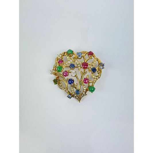 18k Gold Ruby Sapphire Emerald Diamond Peridot Brooch Pin