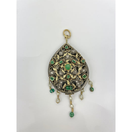 18k Gold Silver Diamond Emerald Pearl Aroma Pendant