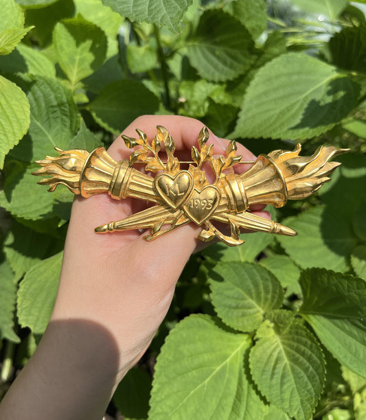 A Rare Vintage Karl Lagerfeld 1993 Gold Heart Torch Brooch Pin Olympics