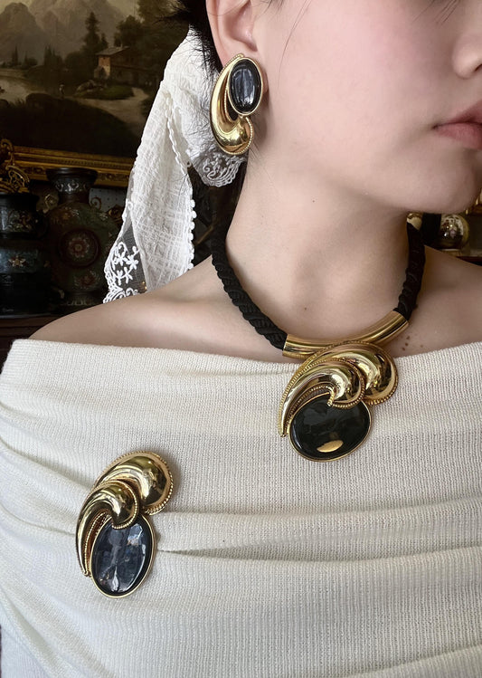 A Set Of France Vintage Gold Tone Black Woven Jewelry