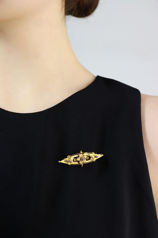 A Vintage 15K Gold Aquamarine Pendant Brooch Pin