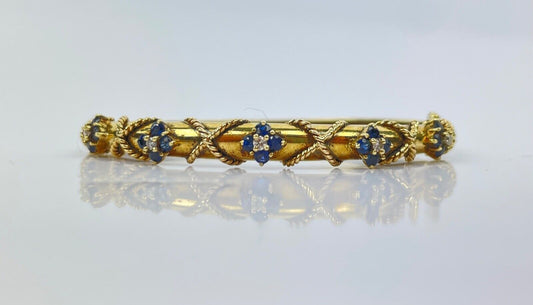 A Vintage 14K Gold Sapphire Diamond Bangle