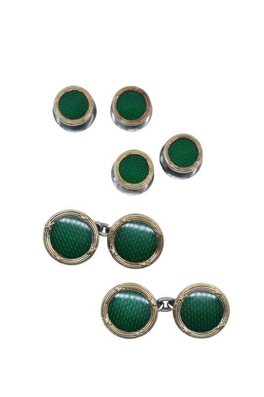 A Set Of 3 Pairs England D&F Silver Green Enamel Cufflinks
