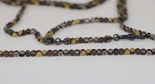 A Very Rare Antique Mixed Metal Shakudo Long Chain Necklace Meji Period