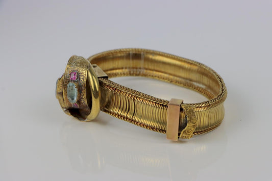 Antique 14K Gold Mesh Belt Bracelet Aquarmarine