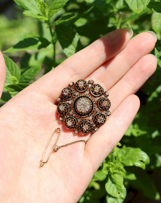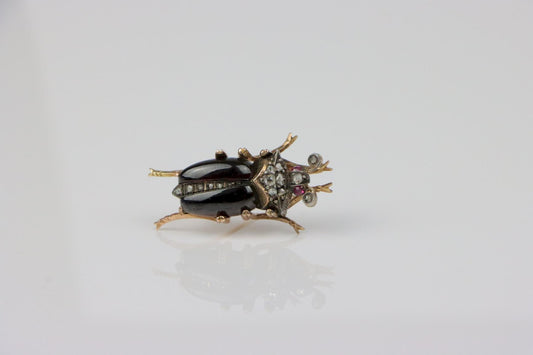 Antique 14K Gold Garnet Diamond Insect Brooch