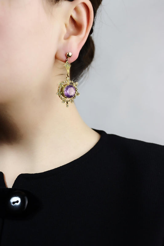 Antique 18K Gold Amethyst Pearl Drop Earring