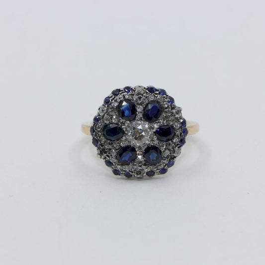 Antique 14K Gold Sapphire Diamond Flower Ring