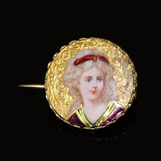 Antique 18K Gold Enamel Brooch Pin