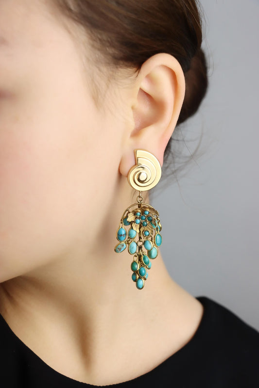 Antique French 18K & 14K Gold Turquoise Cabochon Chandelier Earrings