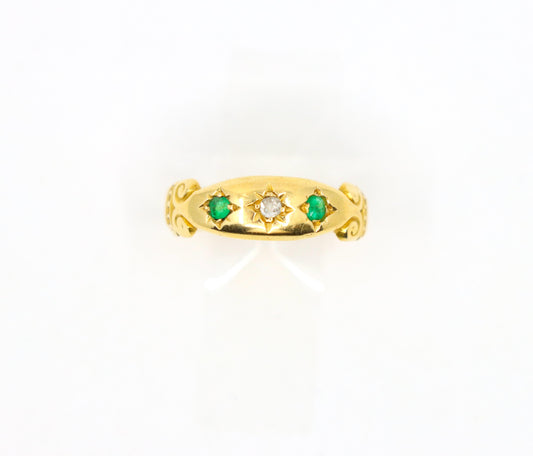 Antique 18K Gold Diamond Emerald Ring