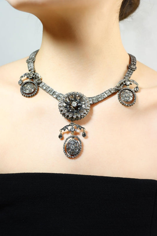 Antique Early Victorian 14K Yellow Gold & Silver Diamond Necklace
