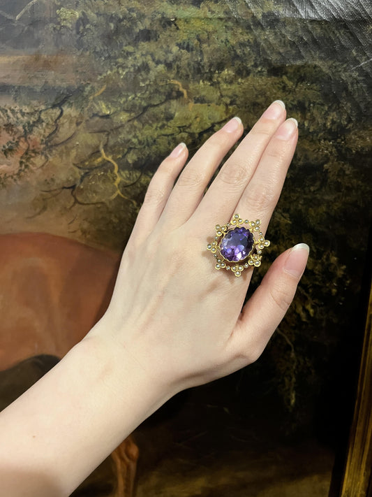 Antique 18K Gold Amethyst Pearl Ring