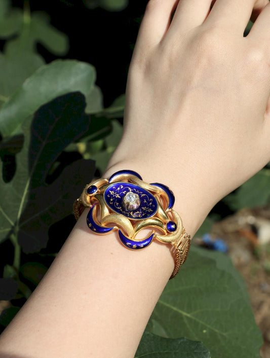 Antique 18K Gold Enamel Diamond Bracelet