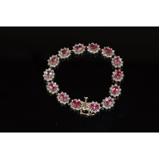 Vintage 14K Gold Pink Topaz Diamonds Bracelet