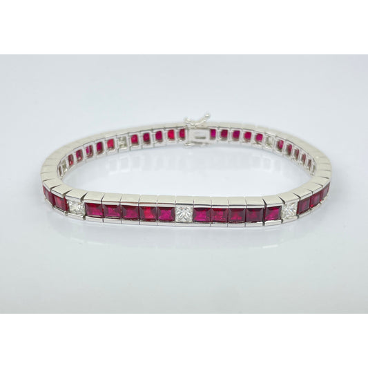 GIA Certified Red Ruby Diamond Line 18k Gold Bracelet