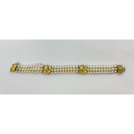 Tiffany & Co. Classic Collection 18k Gold Diamond Pearl Strand Bracelet
