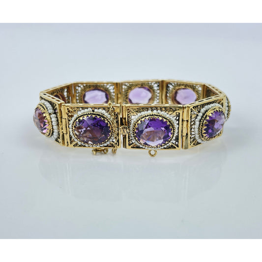 Vintage 14k Gold Seed Pearl Amethyst Bracelet