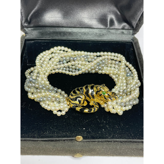 Vintage David Webb 18 kt Gold Tiger Cultured Pearl Bracelet