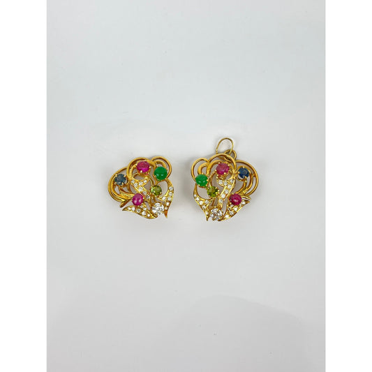 Pair of 18k Gold Ruby Sapphire Emerald Diamond Peridot Earrings