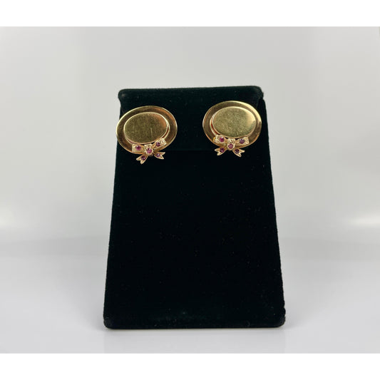 Retro Pair of 14k Gold Ruby Hat Earrings